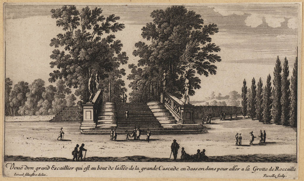Veue dun grand Escailler qui est aubout de l'alleé d...