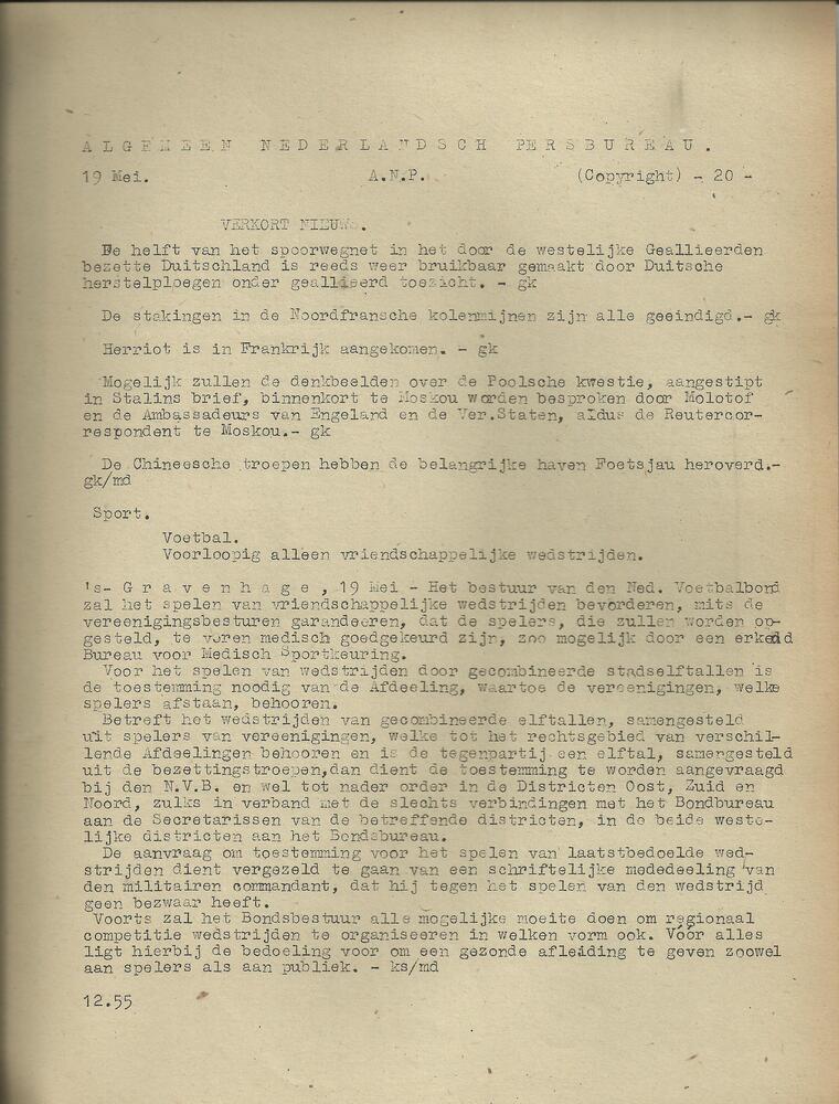 Algemeen Nederlandsch Persbureau, mededelingen, 23 m...