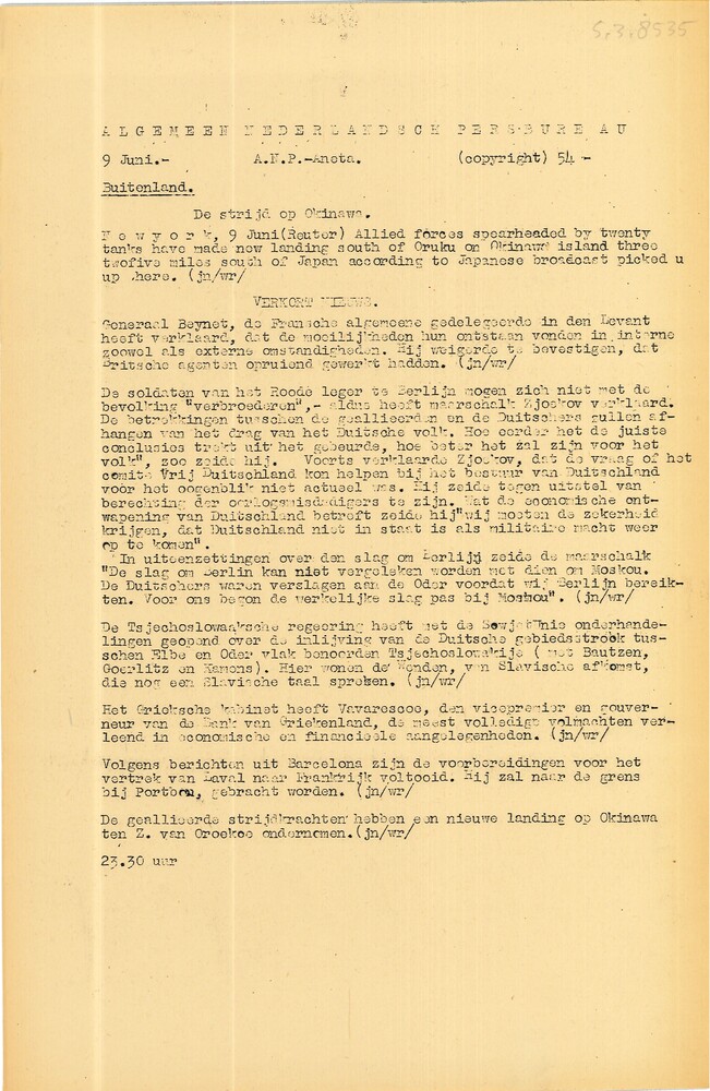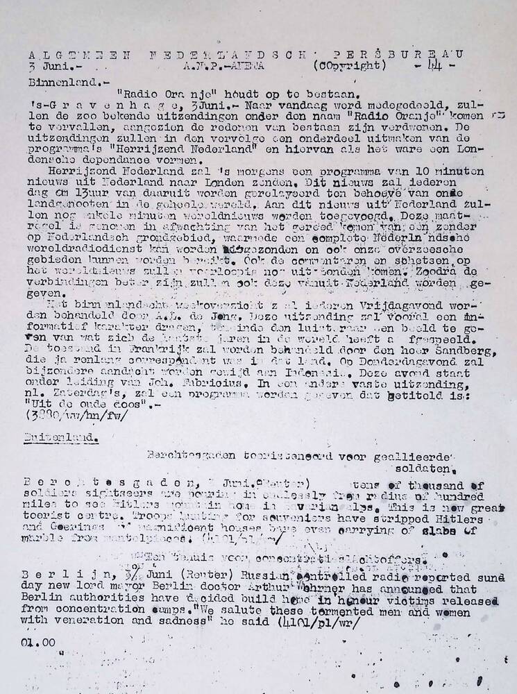 Algemeen Nederlandsch Persbureau, mededelingen, 3 ju...