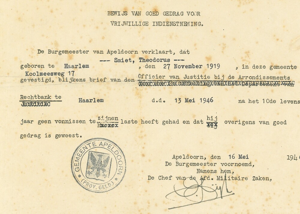 Bewijs van goed gedrag voor vrijwillige Indienstnemi...
