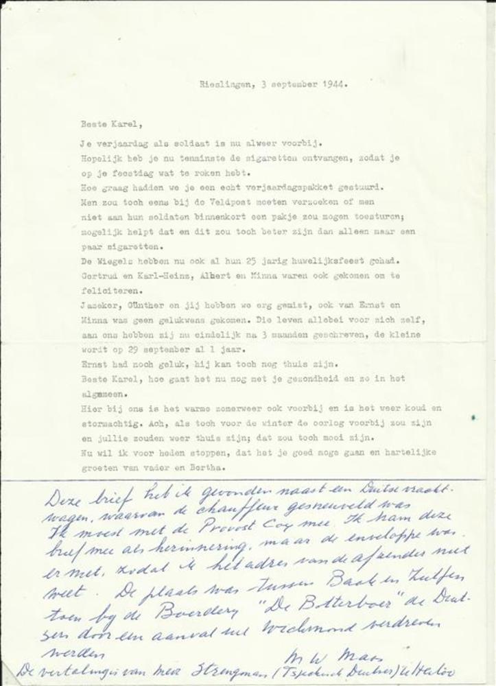 Brief van een Duitse soldaat ( chauffeur ) aan zijn ...