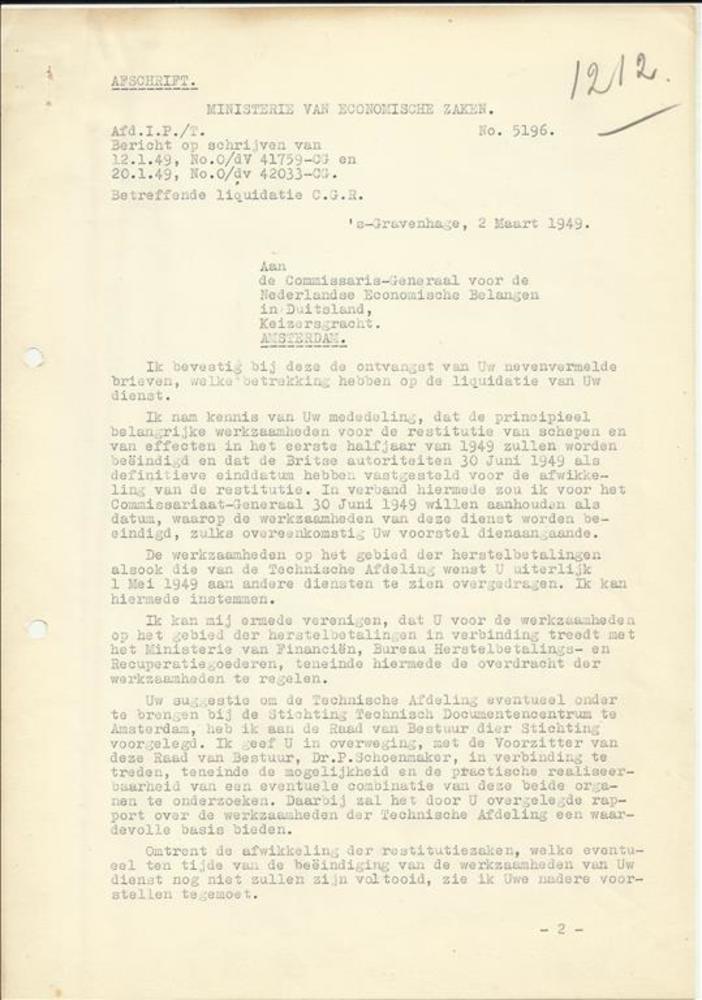 afschrift van de Minister van Economische Zaken betr...