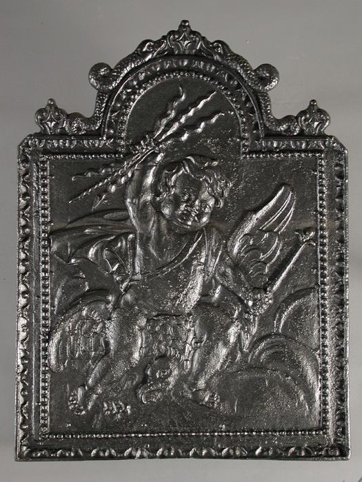 Haardplaat, engel met schild