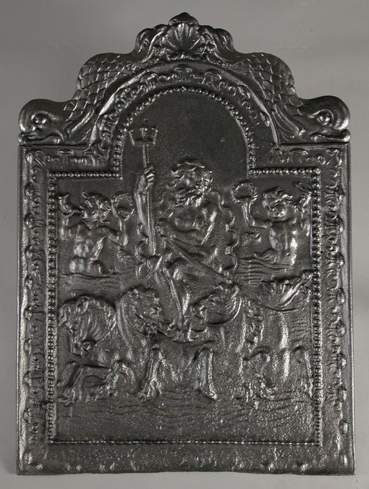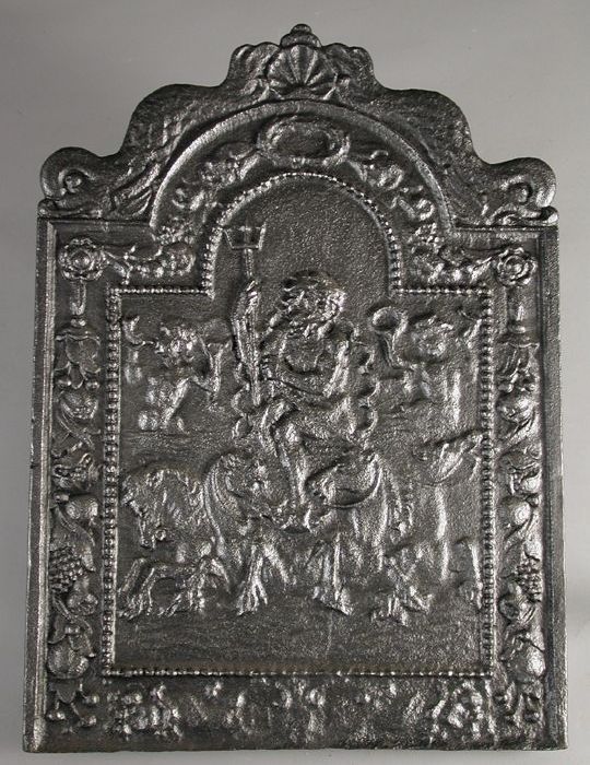 Haardplaat Neptunus op zegekar met vier paarden