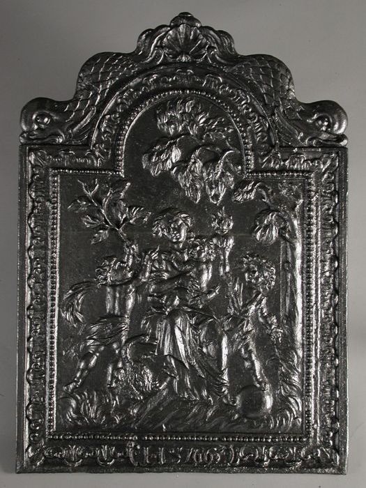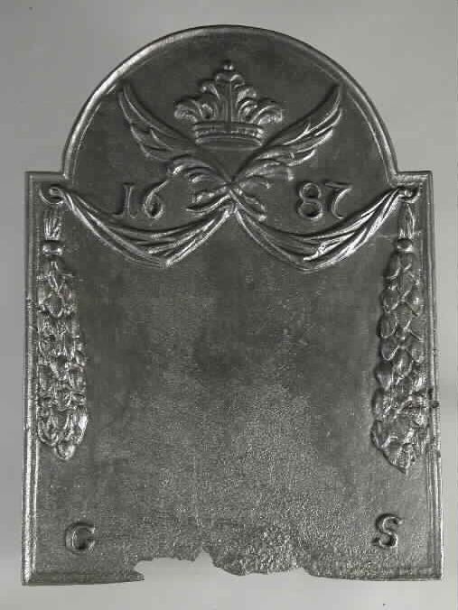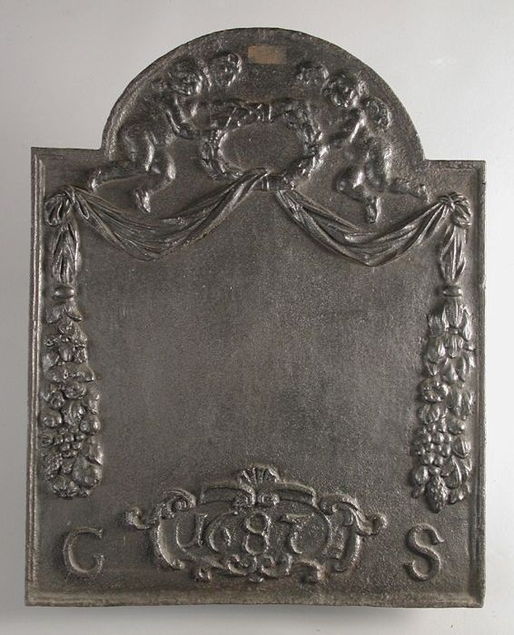 Haardplaat met guirlandes en putti, jaartal "1687" e...