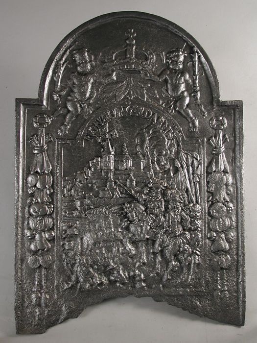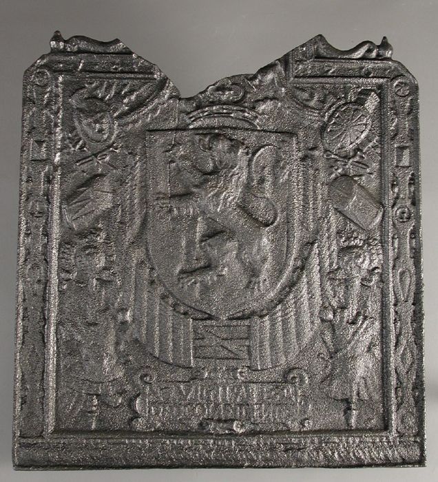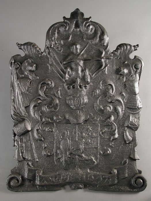 Haardplaat vorstin met wapen van Amsterdam, leeuwen,...