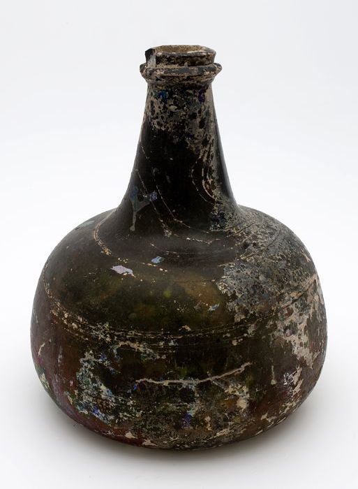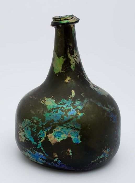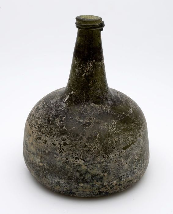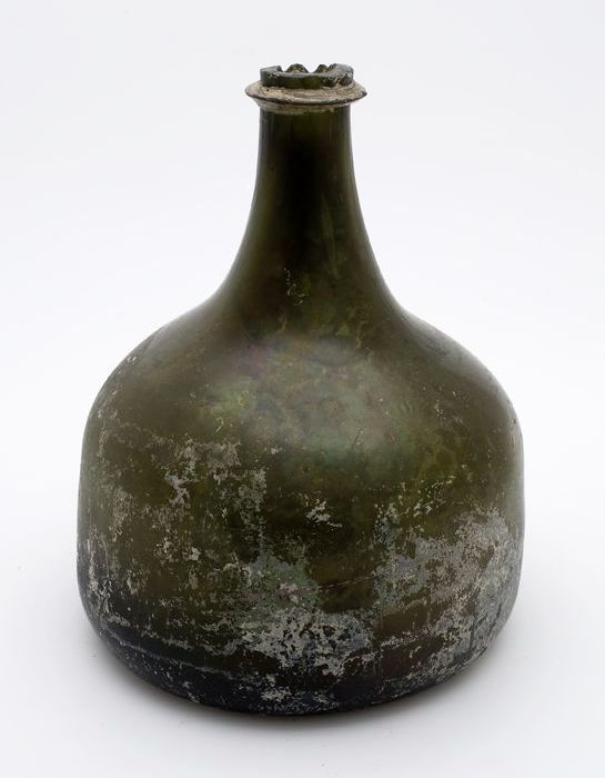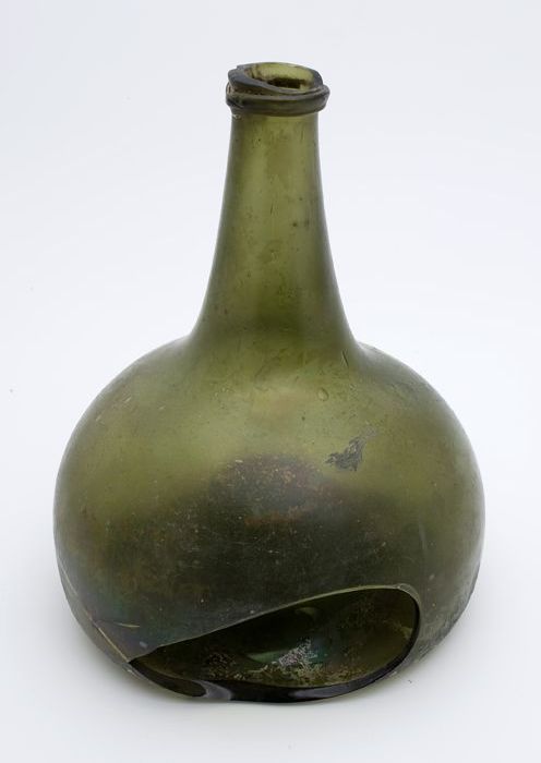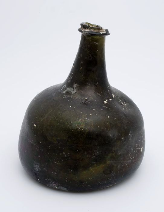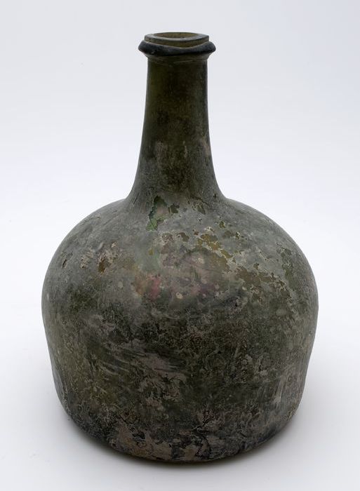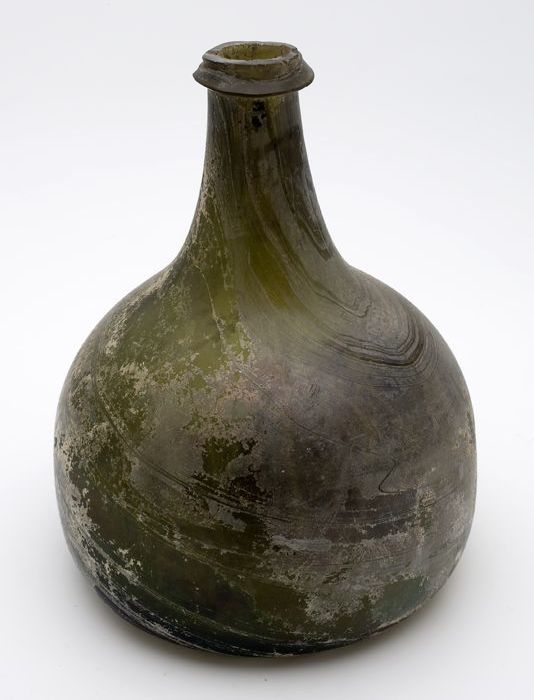 Rondbuikige fles, shaft and globe met glaszegel