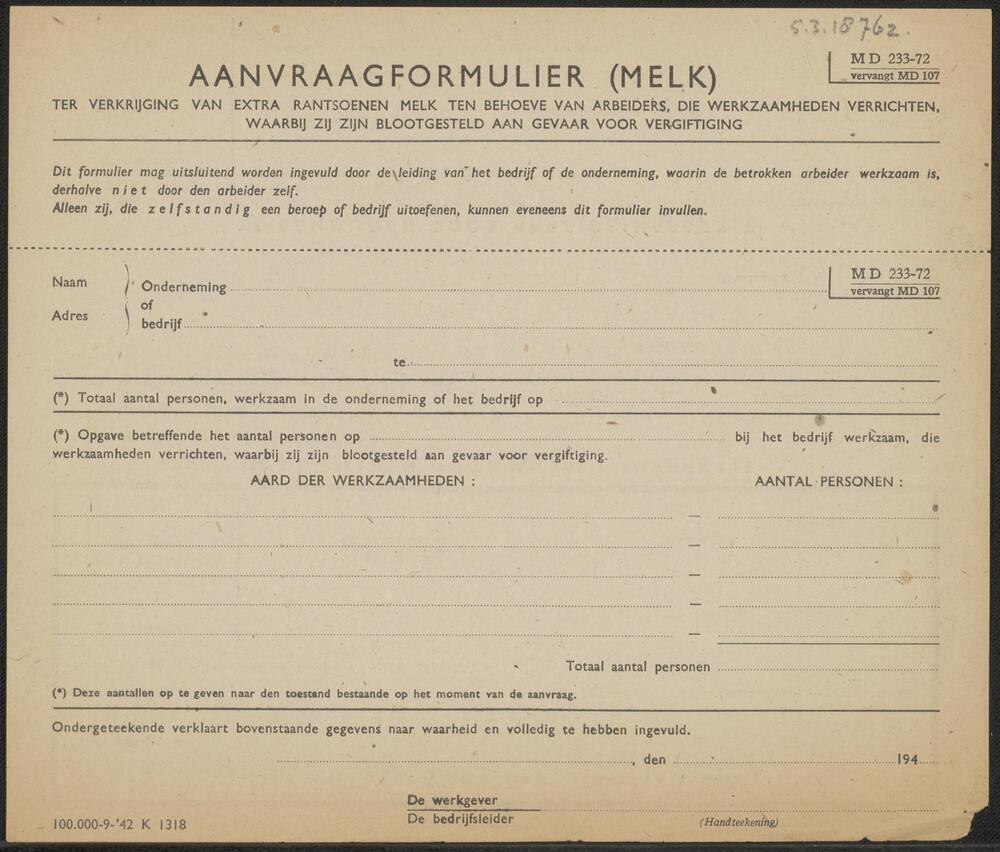 Aanvraagformulier (melk) ter verkrijging van extra r...