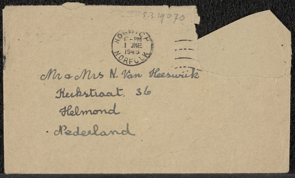 envelop bij brief van Captain J.B. Pick aan mr. & mr...