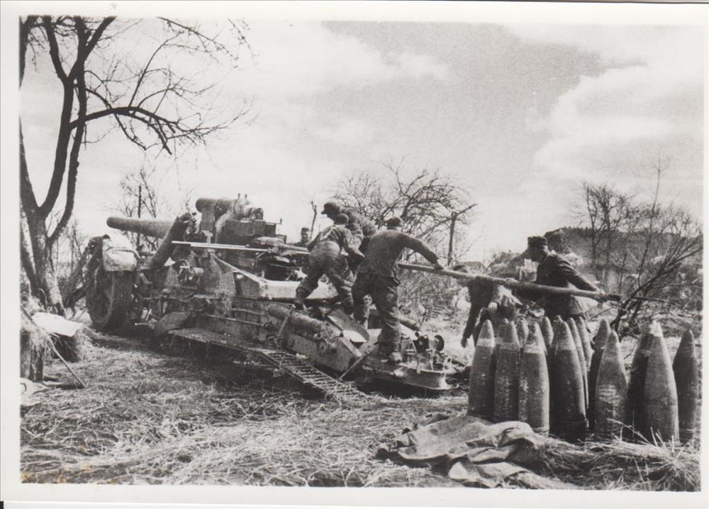 Foto van een Duitse geschutsopstelling van groot kal...