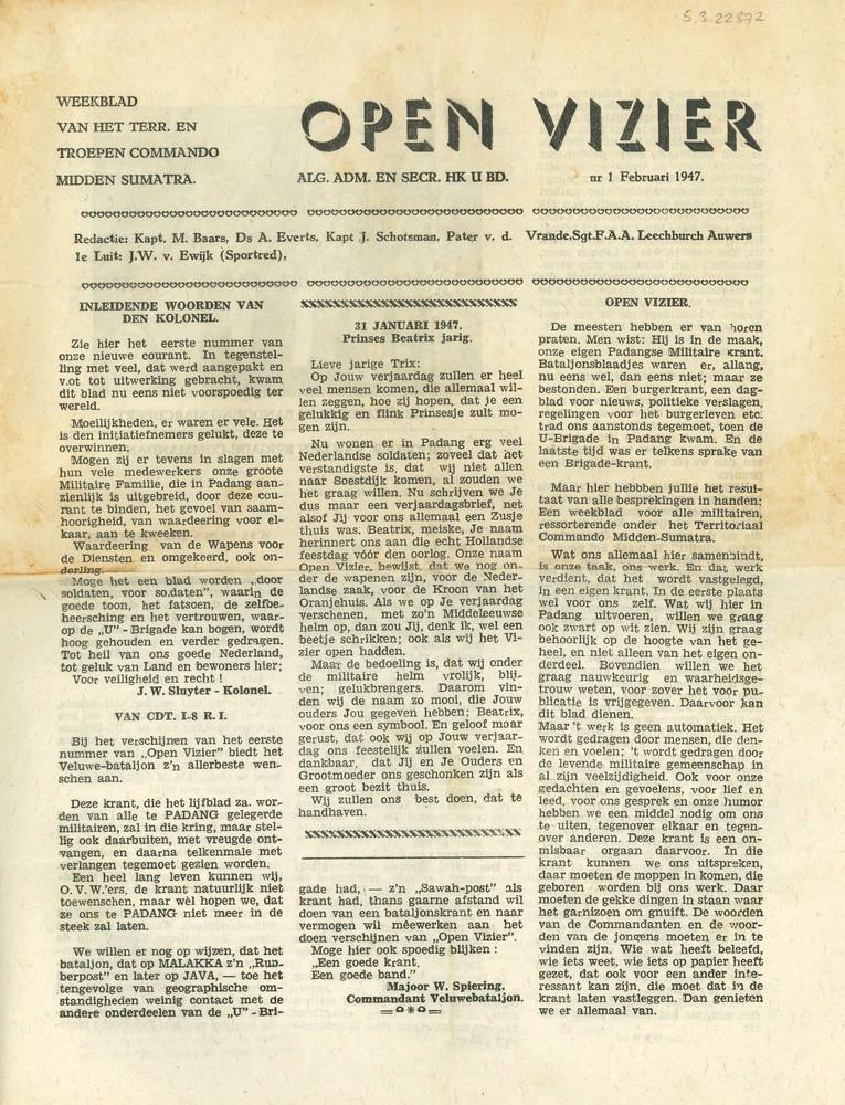 Open Vizier, No. 1, februari 1947