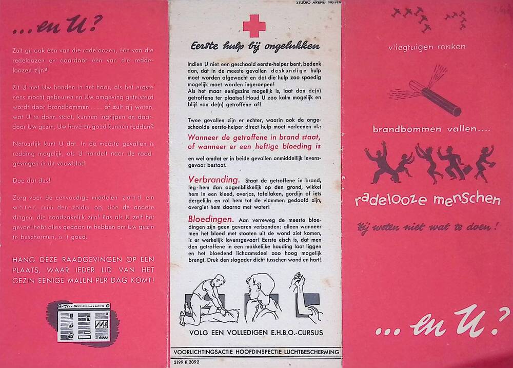 Folder (rood) vliegtuigen ronken, brandbommen vallen...