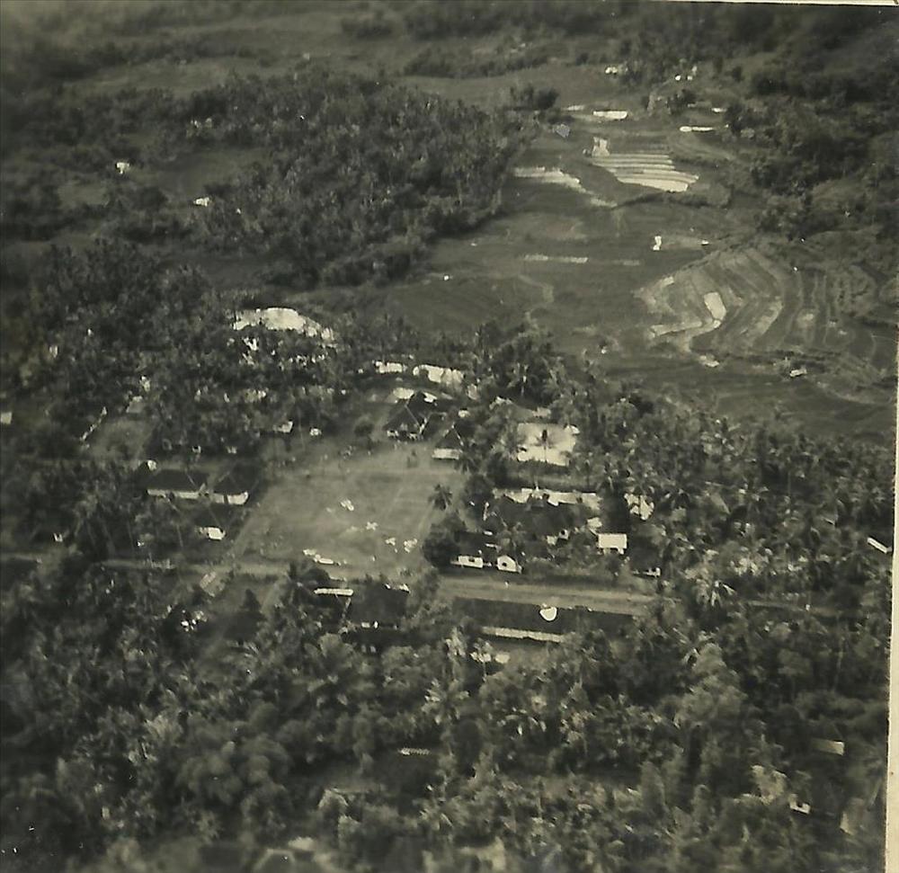 Nederlands Indië; luchtfoto, kampong, terrein, volle...