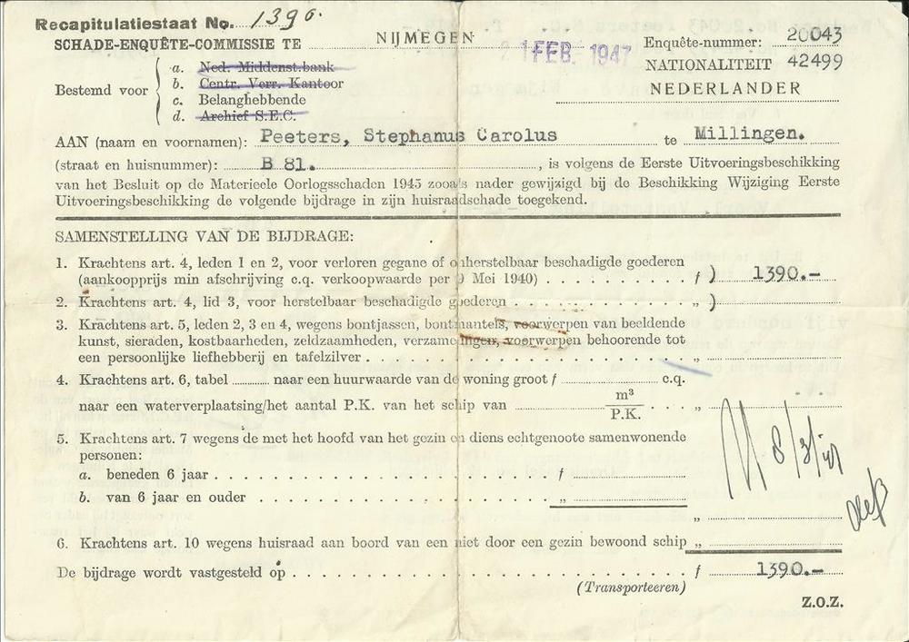 Recapitulatiestaat no 1390 - Schade-Enquête-Commissi...