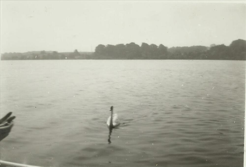 Nederlands Indië; meer, oever, zwaan