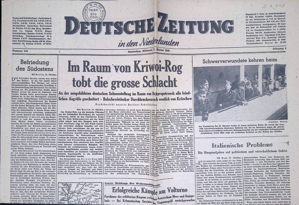Deutsche Zeitung in den Niederlanden. 27 oktober 1943.
