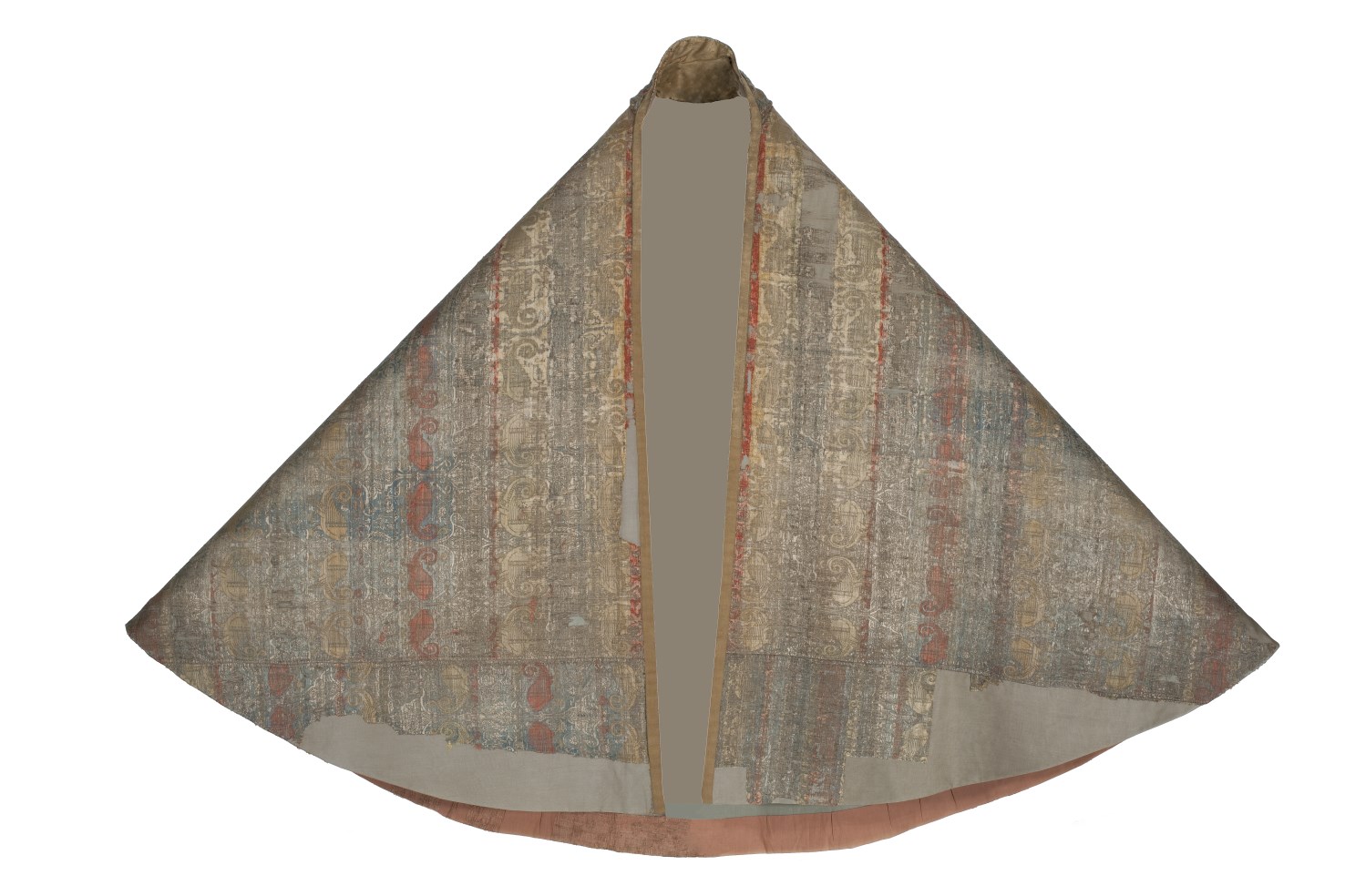 Kazuifel van vergeelde zijde met cirkelpatroon waari...