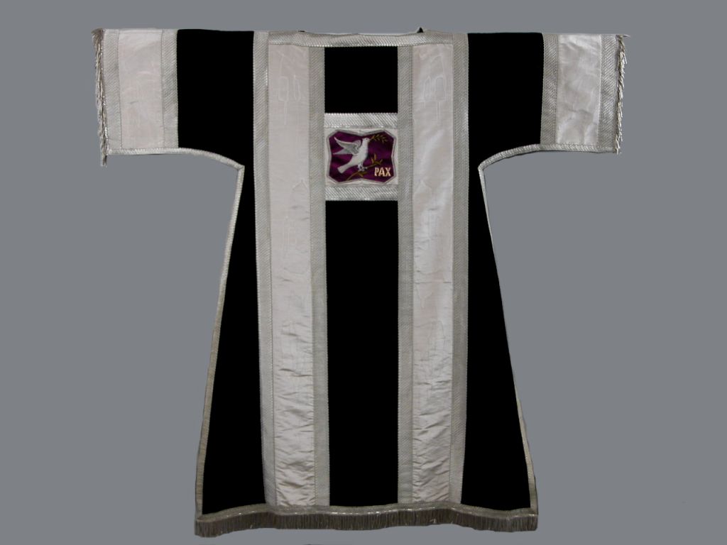 Wit kazuifel met buste van abt in kruis, versiering ...