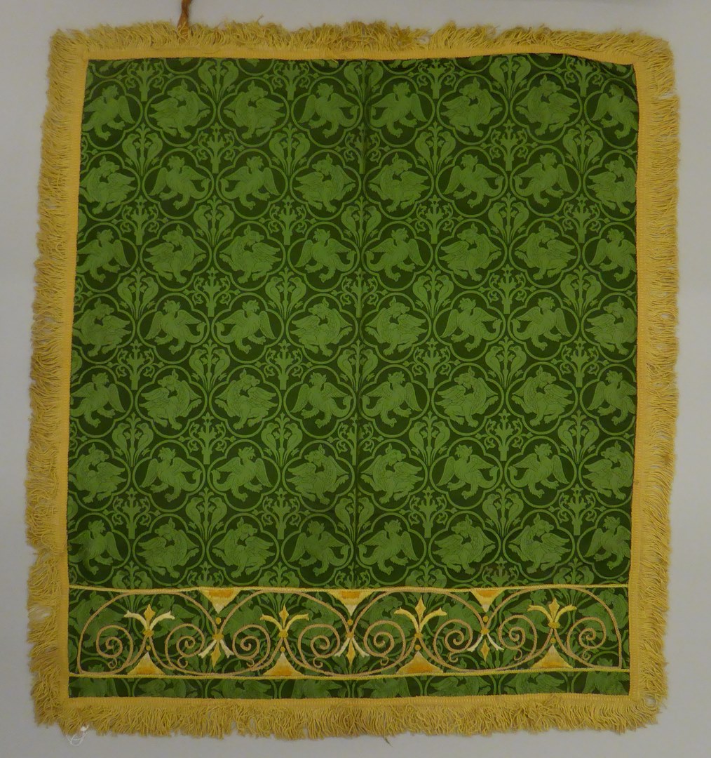 Groen kelkvelum met ingeweven griffioenen in vierpas...