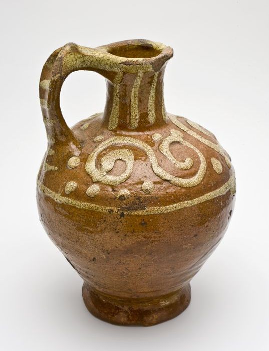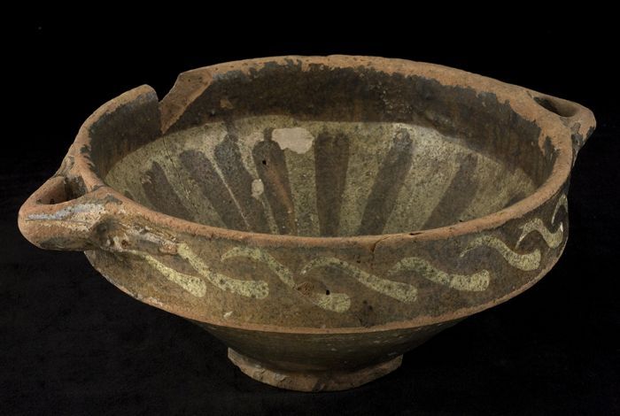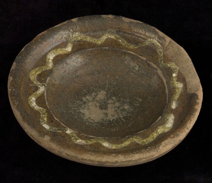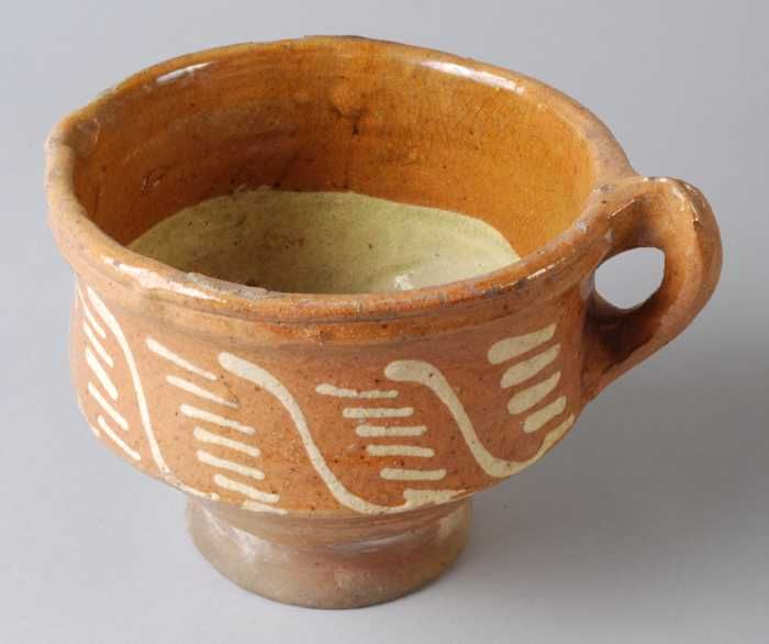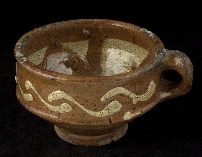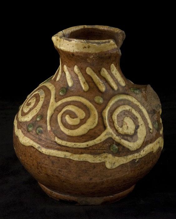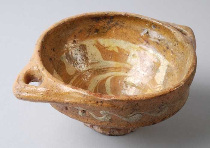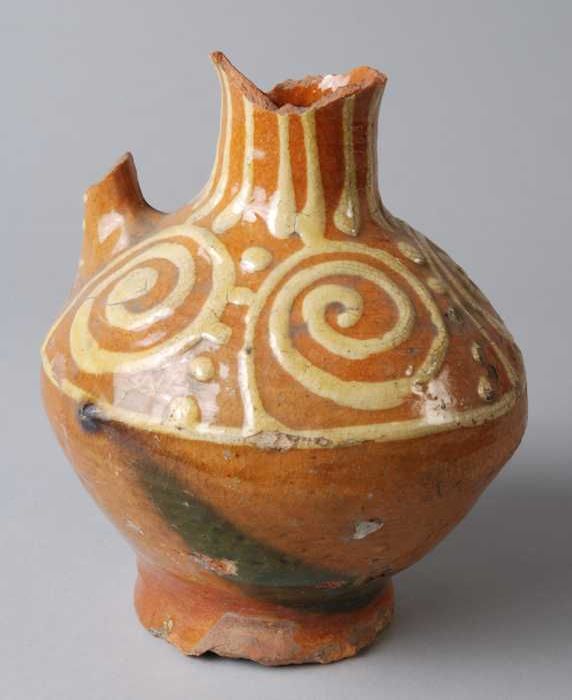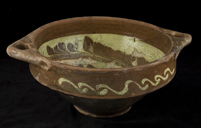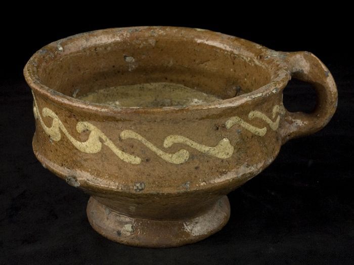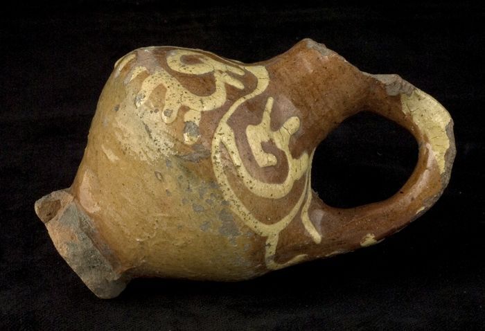 Aardewerk kan versierd in slibtechniek, bolmodel met...
