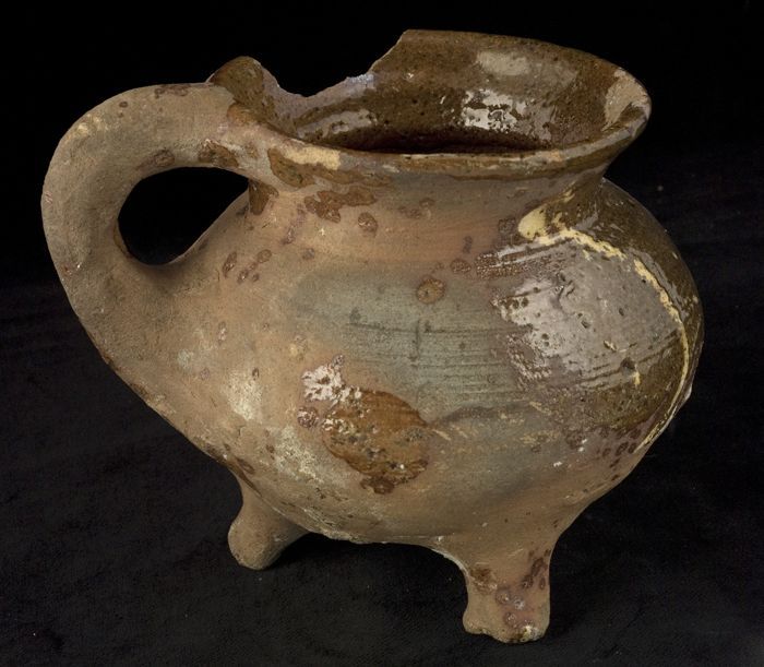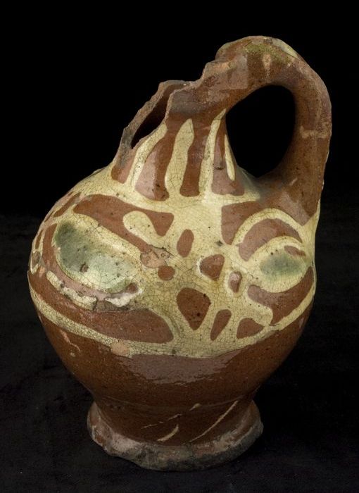 Aardewerk oliekan op standvoet met staand oor, slibv...