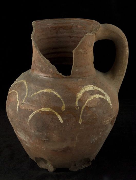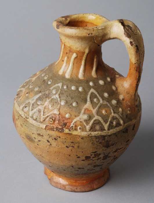 Aardewerk oliekan met schenklip en staand oor, slibv...