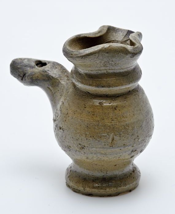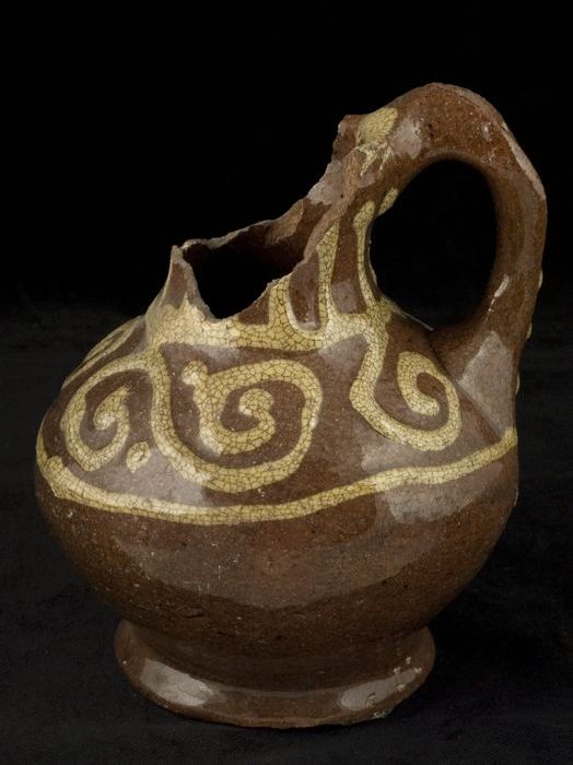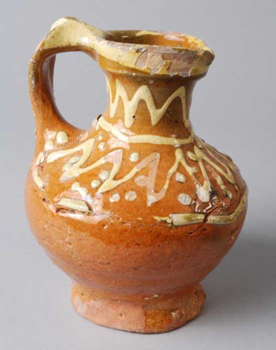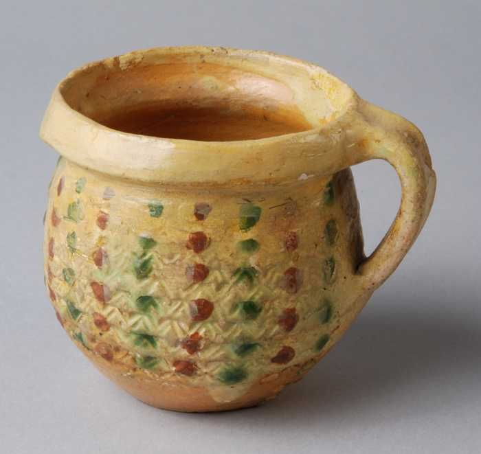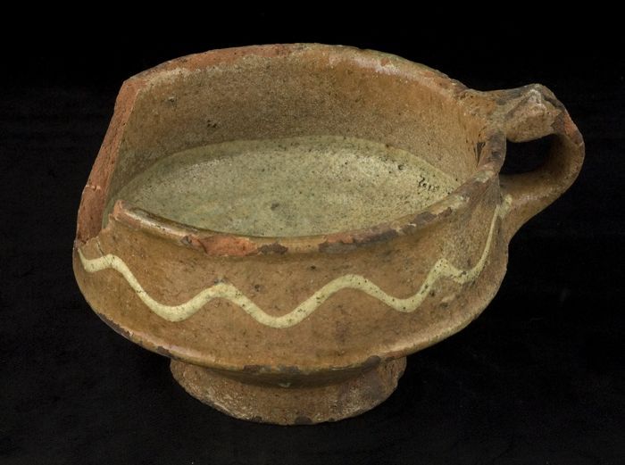Aardewerk tuitpot, roompot, witte scherf, geglazuurd...