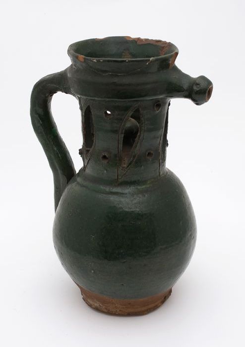 Aardewerk kan met uitsparingen in de hals, siertuit,...