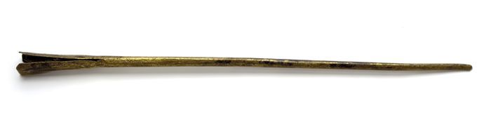Geelkoperen vleesprikker, uit vier delen bestaand ui...