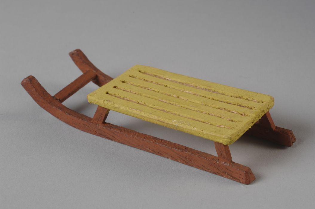 Houten miniatuur slee, glijder rood geverfd, zitting...