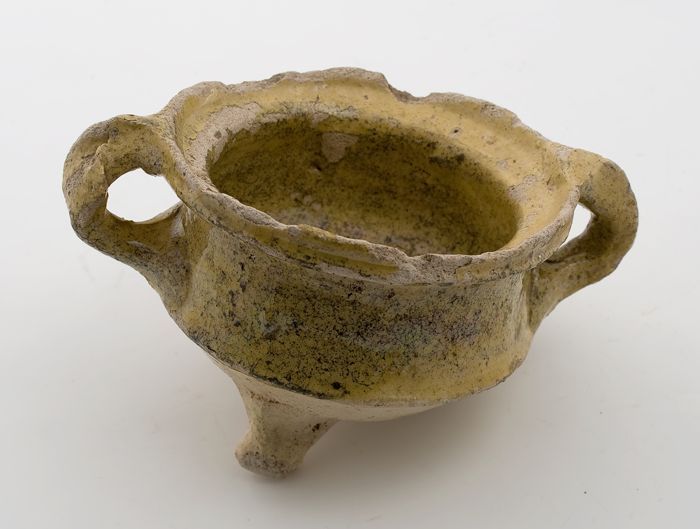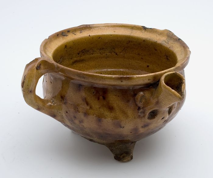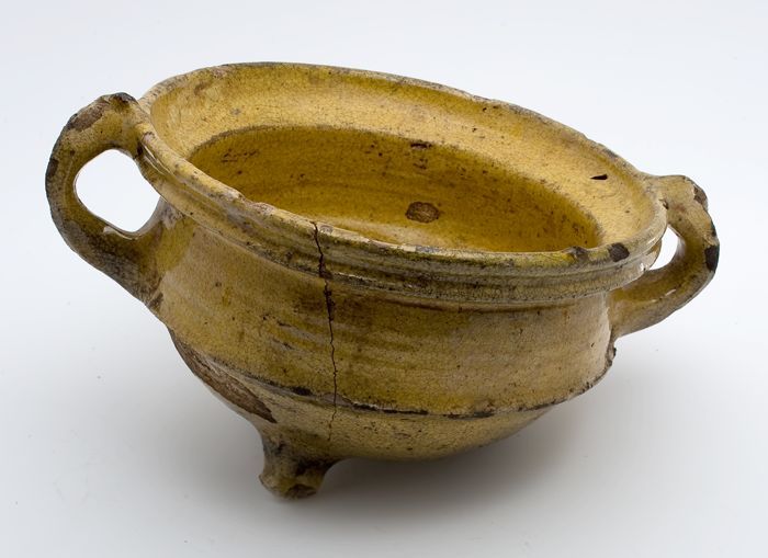 Aardewerk kookpot, witte scherf, geel, geglazuurd, t...