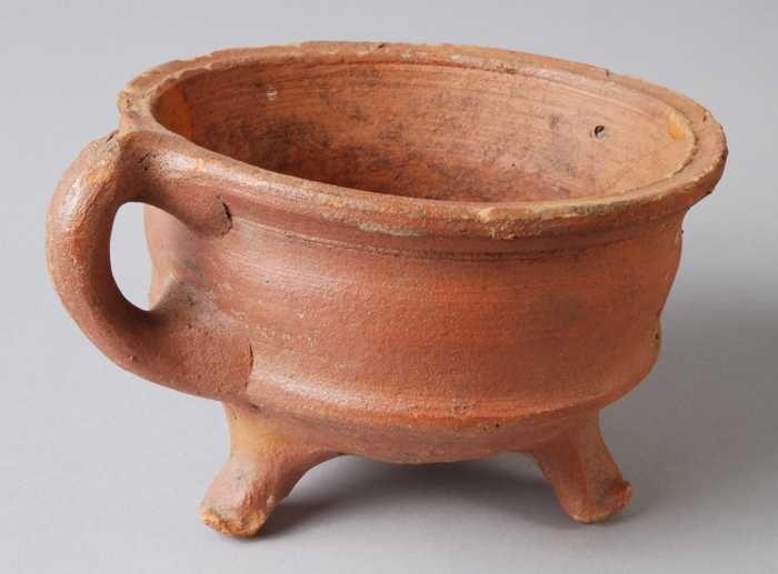 Aardewerk kop of speelgoed kookpot, standring, taps ...
