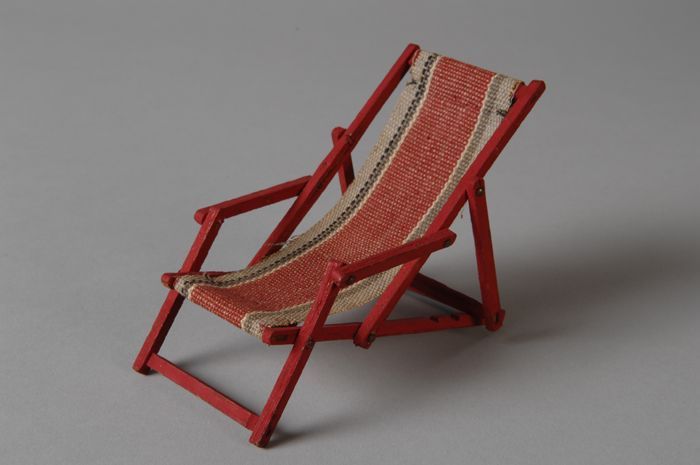 Rode opklapbare miniatuur strandstoel met gestreepte...
