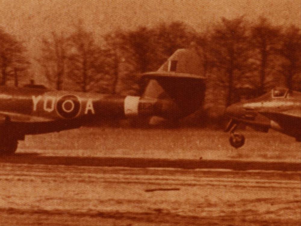 Foto Gloster Meteor's III's die opstijgen van vliegv...
