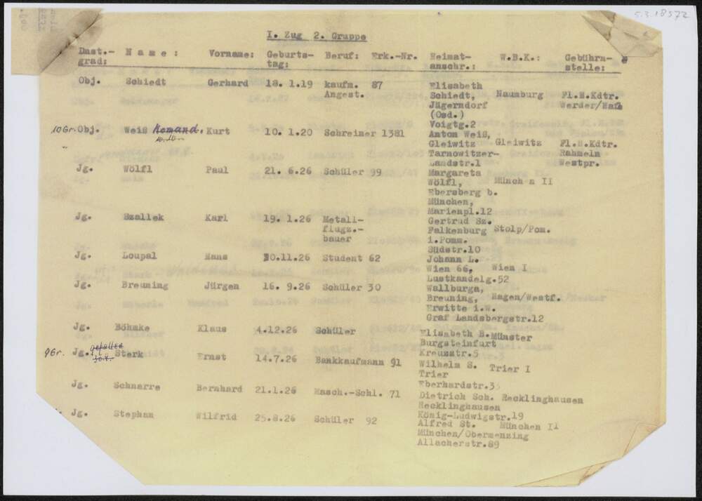 Vel met namen Duitse militairen.