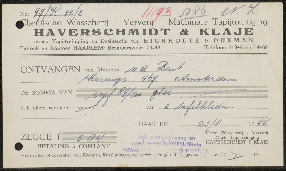 Kwitantie van Chem. Wasscherij - Ververij - Macinina...