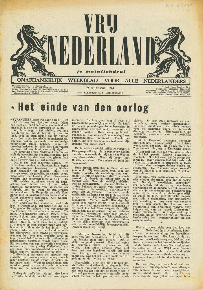 Vrij Nederland, gedrukt te Londen, 5de jaarg. No 4, ...