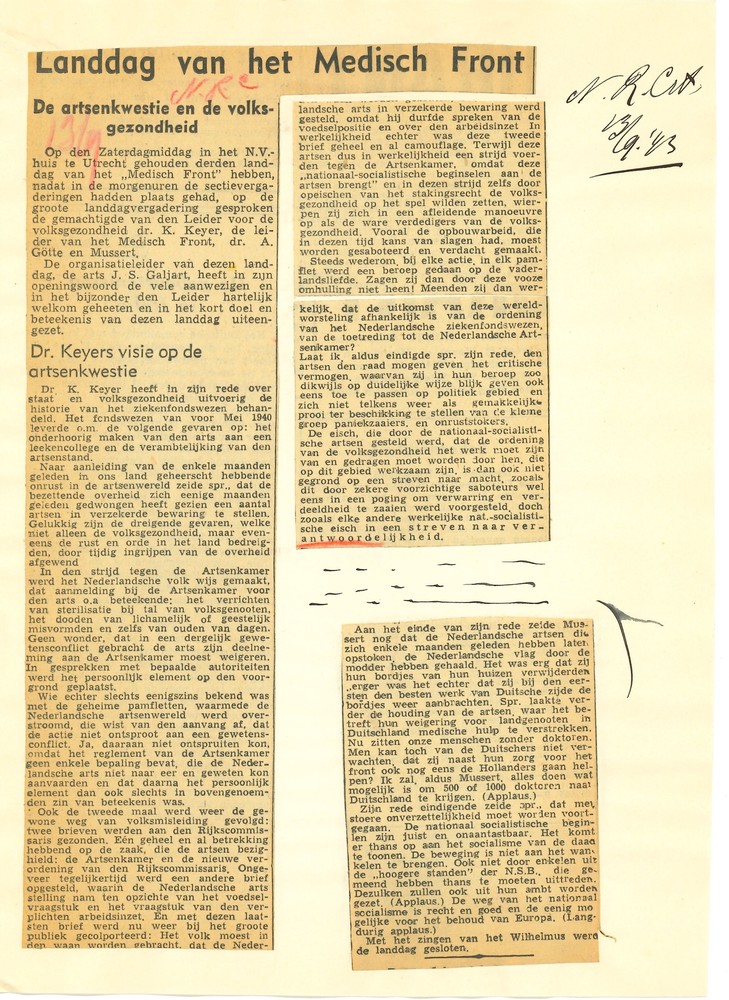 knipsels betreffende artsen in de oorlogsjaren