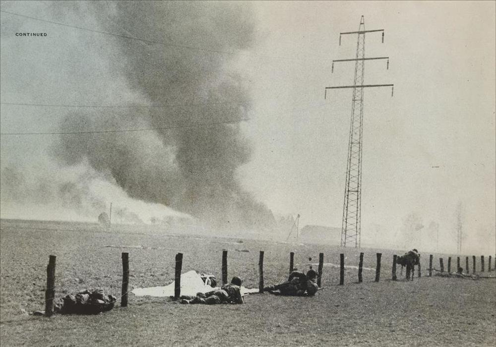 militairen in dekking in weiland