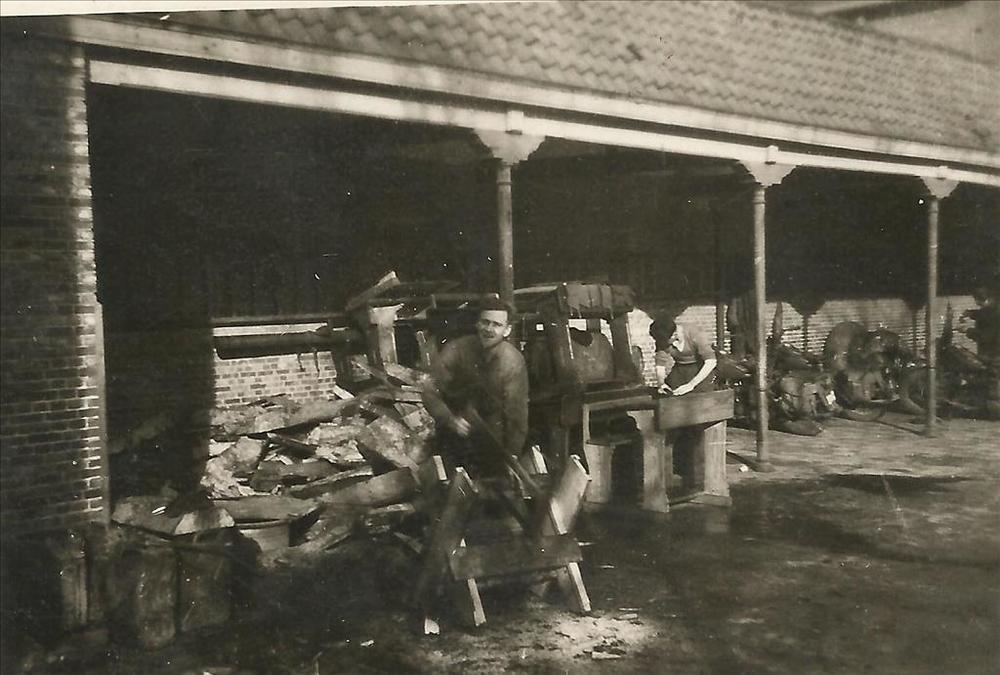 Canadese militair zaagt hout op binnenplaats