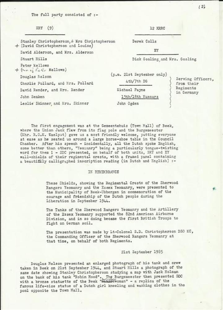 Verslag van het bezoek aan Nijmegen in 1985 van de l...