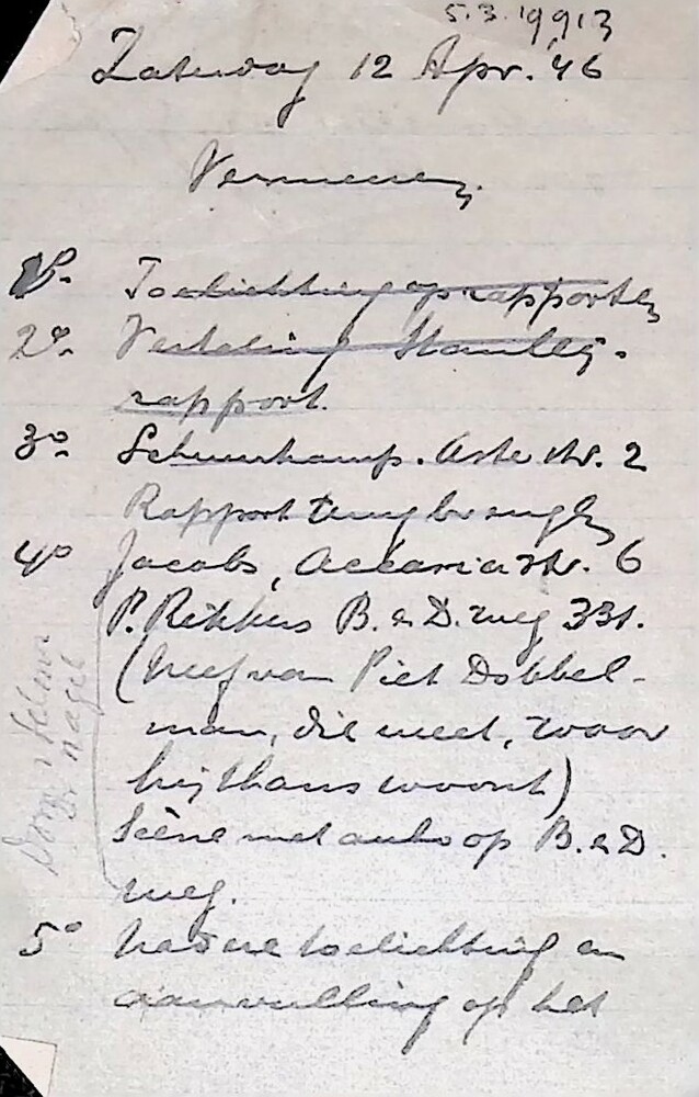 vel papier met beschrijving zaterdag 12 april 1946