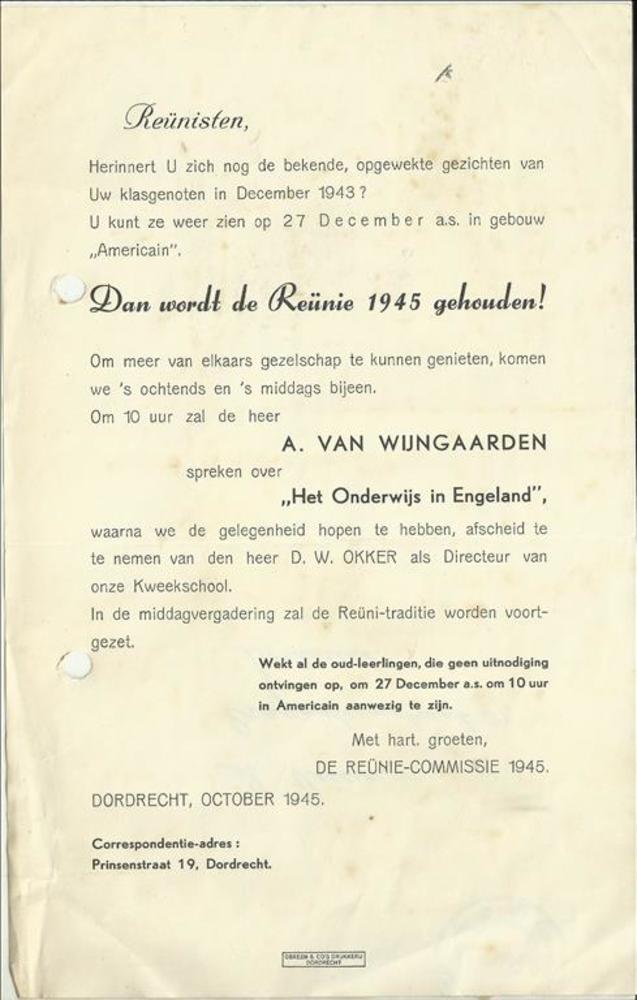 Aan dhr Visser te Dordrecht van de Reünie-Commissie ...