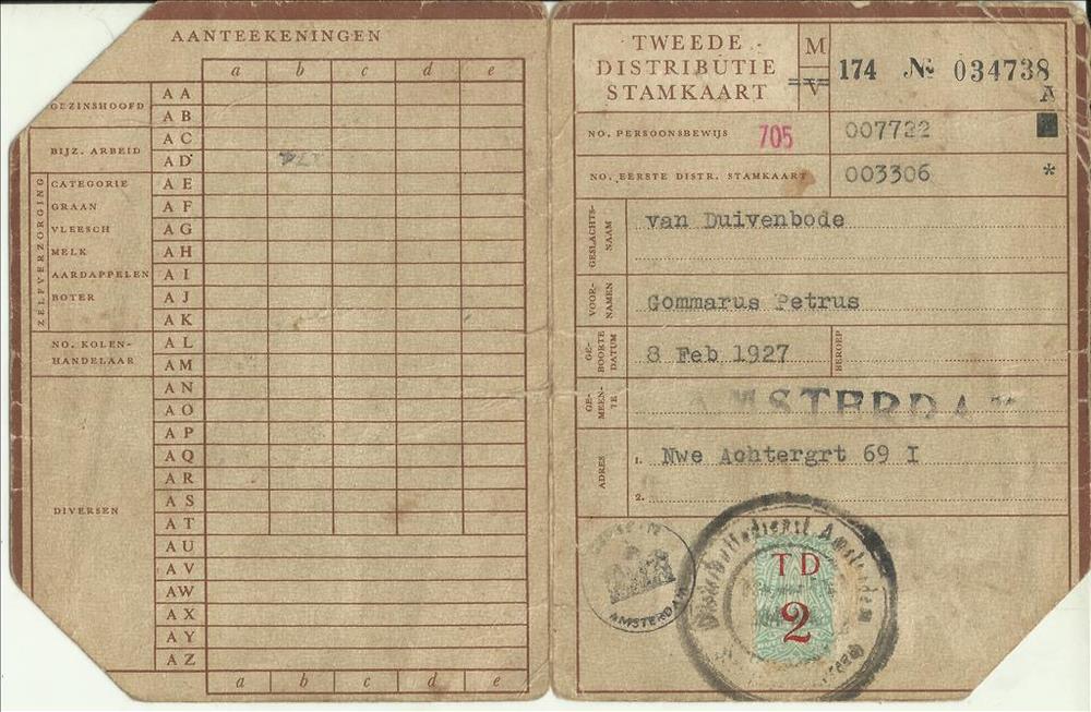 Tweede Distributiestamkaart op naam van G.P van Duiv...