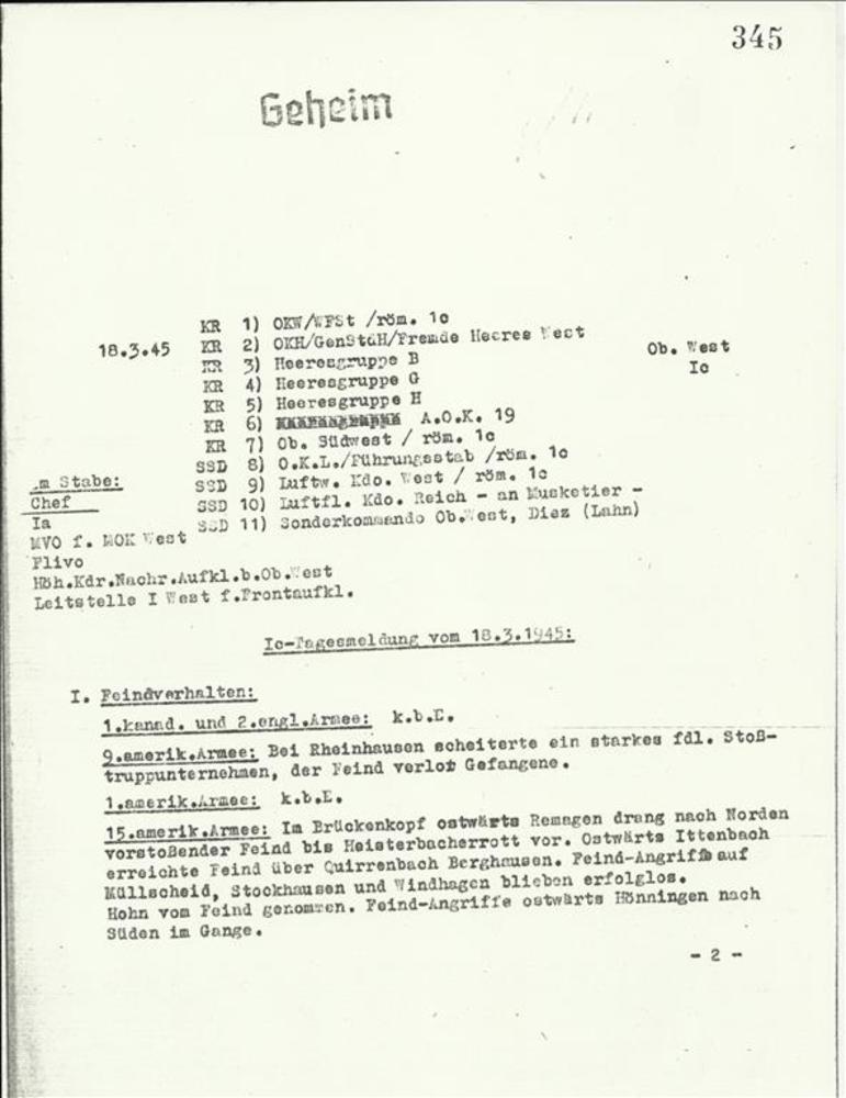 Bericht van de Oberbefehlshaber West / röm, 1 c nr 1...