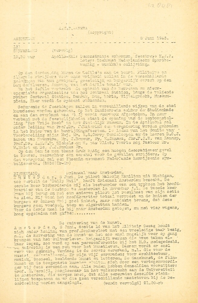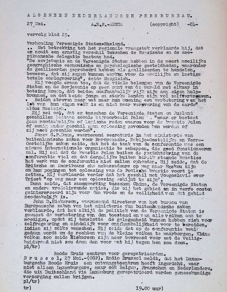 Algemeen Nederlandsch Persbureau, mededelingen, 27 m...