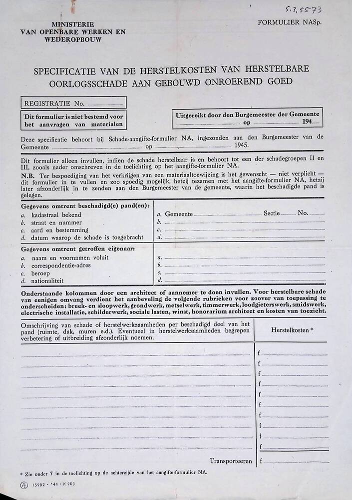 formulier: Specificatie van de herstelkosten van her...