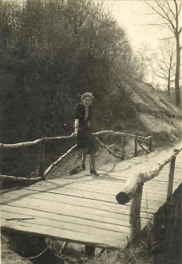 jonge vrouw, brug, natuur