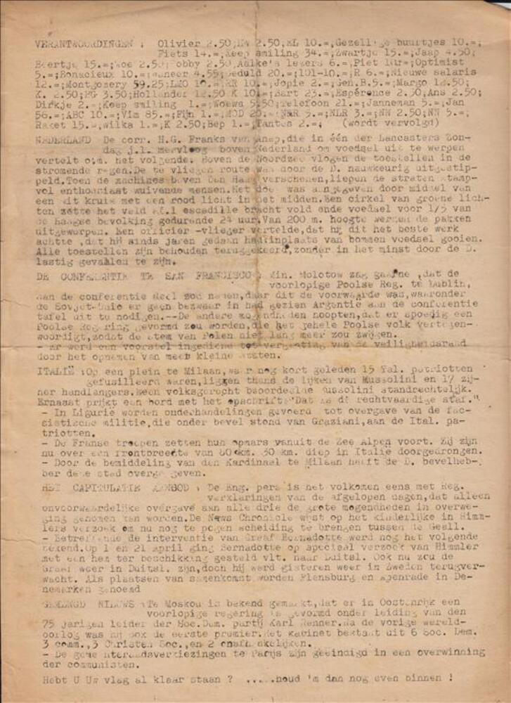 Bulletin : Dinsdag 1 Mei 1945.