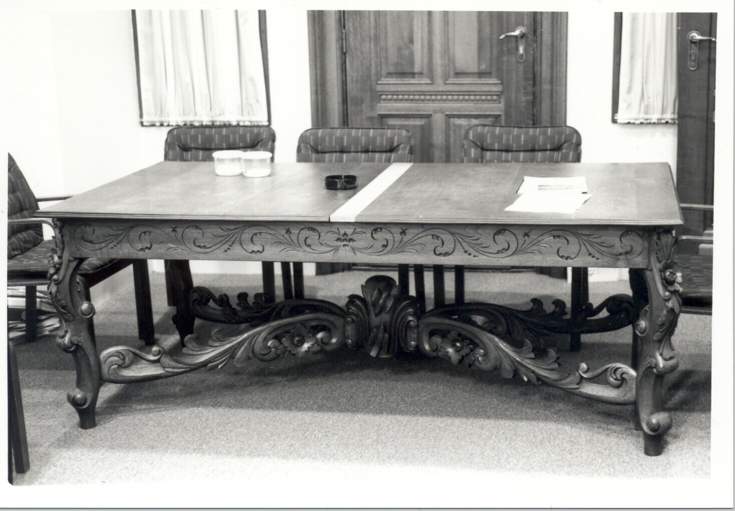Teakhouten tafel met rijk versierde poten, kruisfram...